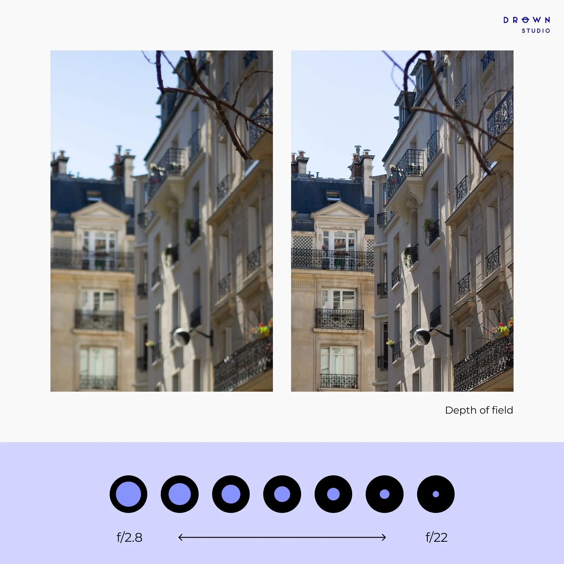 Since the aperture controls how much light enters the camera, the f-stop setting directly affects how bright or dark your image will be. A lower f-stop (wide aperture) lets in more light, which is great for shooting in low-light conditions. A higher f-stop (narrow aperture) limits light, which is helpful in bright conditions or if you want to avoid overexposure.